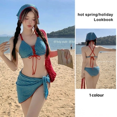 泳衣女温泉三件套小胸聚拢韩国分体比基尼性感网红度假拍照游泳装