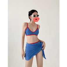 辣妹风撞色三件套分体保守比基尼小胸聚拢显瘦温泉度假泳衣女