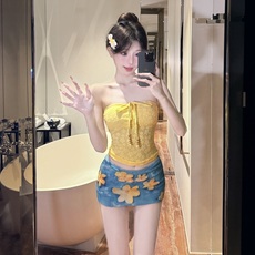 泳衣女纯欲性感辣妹黄色比基尼分体裙式三件套小胸聚拢度假风温泉