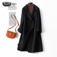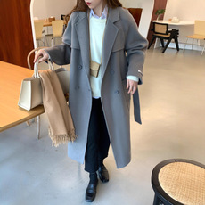 韩范气质长款西装领双面羊绒大衣女秋季宽松时尚显瘦羊毛呢外套潮