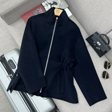 LP山羊绒羊毛简约风立领拉链毛呢外套中长款宽松收腰显瘦百搭大衣