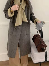 【商场同款】大口袋毛呢双面绒羊毛大衣女纯色中长款宽松显瘦外套