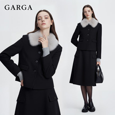 GARGA法式气质毛呢西装外套女毛领小西服显瘦套装两件套半身裙冬
