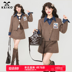 KEIKO 时髦通勤毛呢西装套装女26春季复古撞色垫肩小西服+半身裙