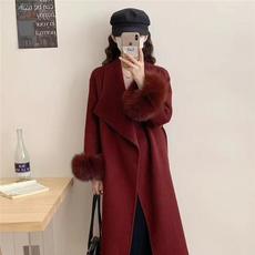 新款双面呢羊绒大衣秋冬季毛呢外套2024狐狸毛浴袍长款高级感女装