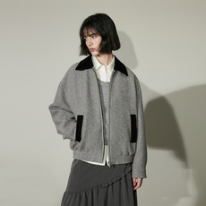 檬系!2025秋冬季新款学院风浅灰色连帽双拉链宽松百搭毛呢外套女