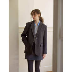 英伦复古风灰色宽松短款羊毛毛呢西装外套女呢子秋冬款通勤小个子