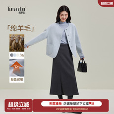 图曼朵蓝色双面呢短款羊毛大衣女冬装高级感毛呢外套呢大衣短外套