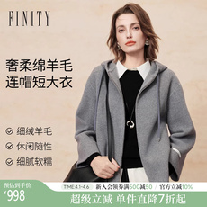 FINITY菲妮迪毛呢外套2025年冬季新款连帽短款双面呢羊毛大衣女士