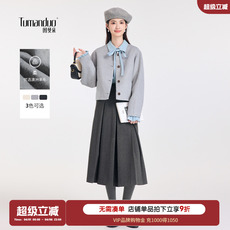 【伊迪卡】26春秋冬短款两件套双面羊毛大衣翻领宽松叠穿毛呢外套