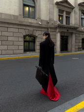 SHIJOIN原创 黑色巴尔马肯大衣羊毛中长款毛呢风衣外套秋冬200400