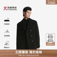 劲霸男装秋冬新款全羊毛双排扣中长款毛呢大衣外套|BFWT3901