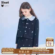 小童木 甜飒小香风女童毛呢套装冬装新款蝴蝶结中大童外套半身裙