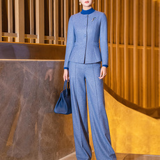 蓝色毛呢阔腿裤套装冬2025新款时尚气质收腰显瘦羊毛小香风两件套