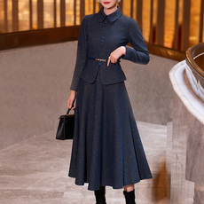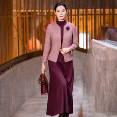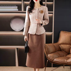 喜卉妈妈秋装新款毛呢短款外套小香风上衣中老年女装春秋套装裙子