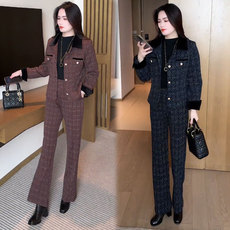 时尚毛呢套装女2025秋季新款洋气质格子小香风短外套直筒裤两件套
