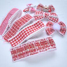 复古条纹毛球方巾一片式头花 小众棉麻材质布艺发圈马尾发饰女