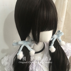 日系亚文化手作毛线蕾丝毛球蝴蝶结发夹水色粉色少女可爱发饰对夹