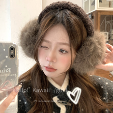 甜酷风y2k棕色仿貂毛耳罩毛绒冬季雪景保暖耳包女骑行护耳套耳暖
