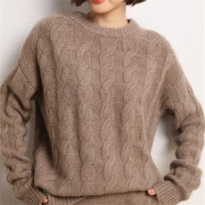 2024秋冬新款100纯山羊绒圆领麻花针织衫女时尚休闲加厚打底毛衣