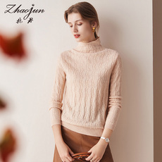 七针双股加厚100%纯山羊绒衫女半高领蝴蝶绞花长袖打底毛衣针织衫