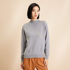 七针双股加厚100%纯山羊绒衫女半高领胸前扭花长袖毛衣打底衫内搭