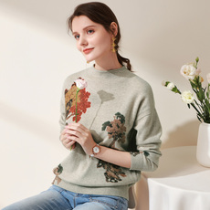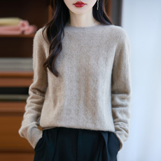 新款圆领100%纯羊绒衫女毛衣秋冬宽松大码洋气中年妈妈羊毛打底衫