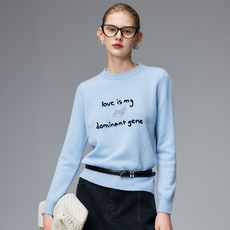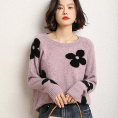 帕罗100%山羊绒提花羊绒衫秋冬新款圆领减龄针织打底宽松毛衣女