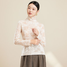 春竹秋冬100%山羊绒保暖气质显瘦软糯风自由领针织衫毛衣女打底衫