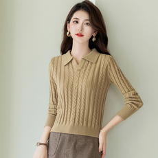 洋气麻花针织毛衣女长袖polo领外穿2023年秋冬高腰保暖羊毛打底衫
