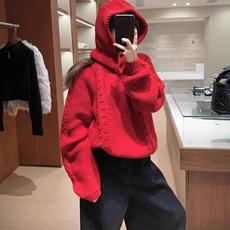 2025秋冬新款100%纯山羊绒衫女连帽宽松慵懒风毛衣针织打底衫帽衫