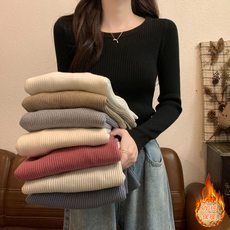 加绒加厚圆领一体绒毛衣女上衣秋冬针织衫2025修身打底衫内搭长袖