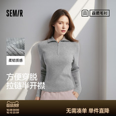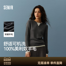 森马针织衫女含羊毛圆领修身气质打底衫秋冬季新款假两件拼色毛衫