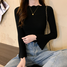 秋季百搭气质修身长袖打底针织衫上衣洋气别致独特内搭毛衣女秋冬