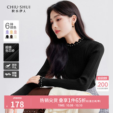 秋水伊人打底衫毛衣女黑色针织衫 2025冬装新款弹力气质内搭上衣