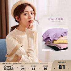 乐町波浪领针织衫女春款针织毛衫修身半高领多色基础打底衫长T恤