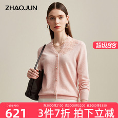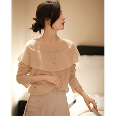 蕾丝花边V领羊绒衫女100纯山羊绒毛衣秋冬新款宽松内搭针织打底衫