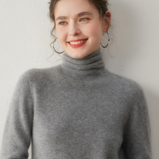 一线成衣堆堆领羊绒衫女无缝高领宽松内搭针织打底衫山羊绒毛衣