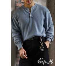 柴米洗水做旧亨利领长袖T恤纯棉毛衣男士秋季打底衫美式复古咔叽