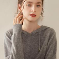 山羊绒帽衫女纯色秋冬宽松连帽毛衣羊绒针织打底衫带帽卫衣减龄