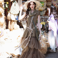 新疆西藏川西旅游一整套穿搭针织毛衣设计感格子半身裙废土风套装