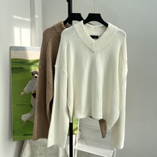 羊毛衫女2025秋季新款V领毛衣宽松显瘦套头长袖羊绒针织打底衫