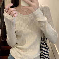 长袖针织打底衫女洋气春秋新款圆领上衣内搭短款修身薄款毛衣套头