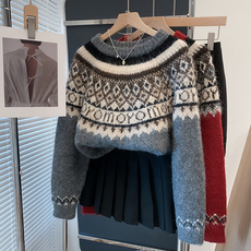 重磅加厚精梳棉线针织印花打底衫女圆领套头韩版宽松保暖打底毛衣
