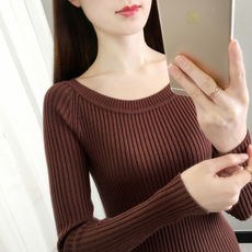 针织毛衣女式新款方领纯色简约修身百搭套头时尚打底衫针织毛衣女