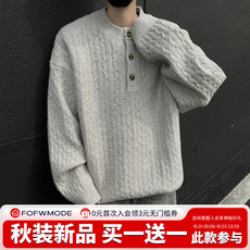 FOFWMODE秋冬复古老钱风纽扣亨利领针织衫男女宽松慵懒高级感毛衣