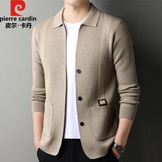 皮尔卡丹高档男士羊毛衫春秋季纯色毛衣外搭针织开衫外套上衣男装