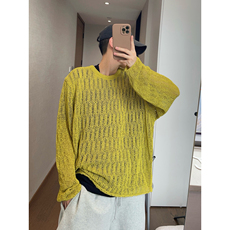 LEDIM WANG明星同款手工编织开衫毛衣外套女25秋冬新款黄色针织衫