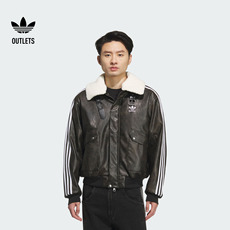 宽松可拆卸翻毛领运动保暖仿皮夹克棉服男冬adidas阿迪达斯三叶草