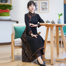 春秋季印花A字裙复古民族风气质百搭显瘦长款中国风大码连衣裙女